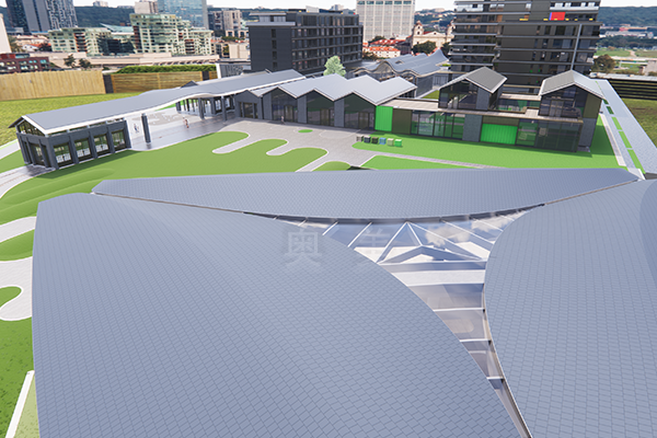 此為惱包奧萊水世界項(xiàng)目,此屋面系統(tǒng)采用的是新型建筑材料金屬復(fù)合瓦鋪設(shè)...